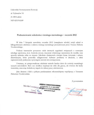 Jestem absolwentem studiów podyplomowych: "Psychologia w pracy trenera" oraz rocznej akademii Frelik Mental Academy, prowadzonej przez Pawła Frelika – trenera mentalnego Reprezentacji Polski prowadzone przez Adama Nawałkę, członka sztabu szkoleniowego Marka Papszuna w Rakowie Częstochowa (zaczynając od 2 ligi).
